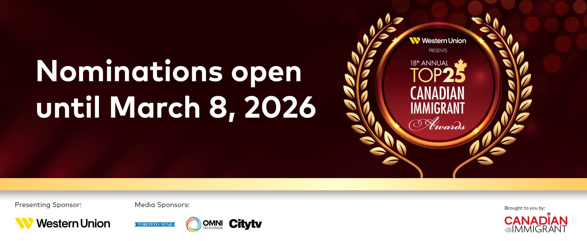 Nominations are now open for the 18th annual Top 25 Canadian Immigrant Awards, presented by Western Union